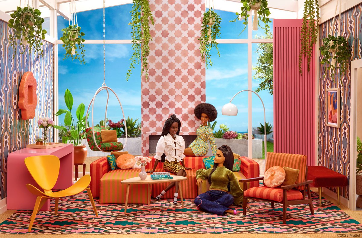 As a child, I used to build worlds for my Barbies. I’d spend endless hours with my sister, Faith, crafting intricate realms, stitching tiny garments from vibrant fabrics, and fashioning furniture from corks, toothpicks, and bottle caps! Early experiences like these introduced me to the magic of design and inspired me to become a designer and artist. So you can imagine how excited I was when @BarbieStyle reached out about what sounded like a dream collab: Jungalow designing a room in Barbie’s dreamhouse !!!