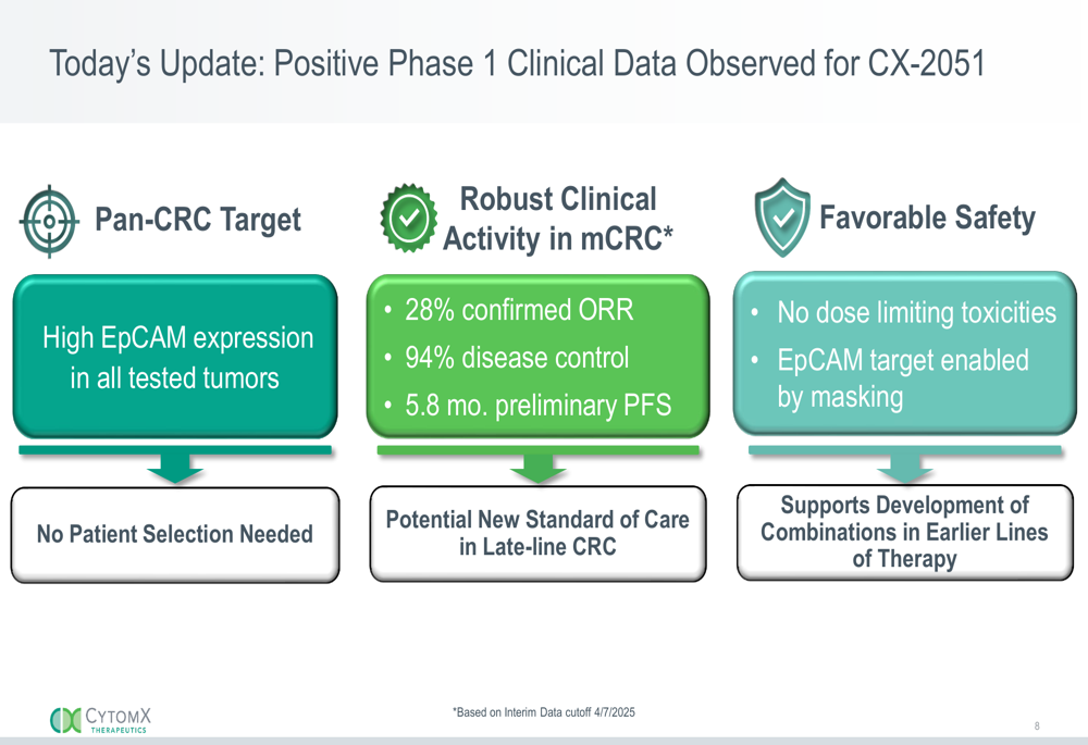 CytomX Q2 2025 presentation slides: CX-2051 shows promising Phase 1 results in CRC