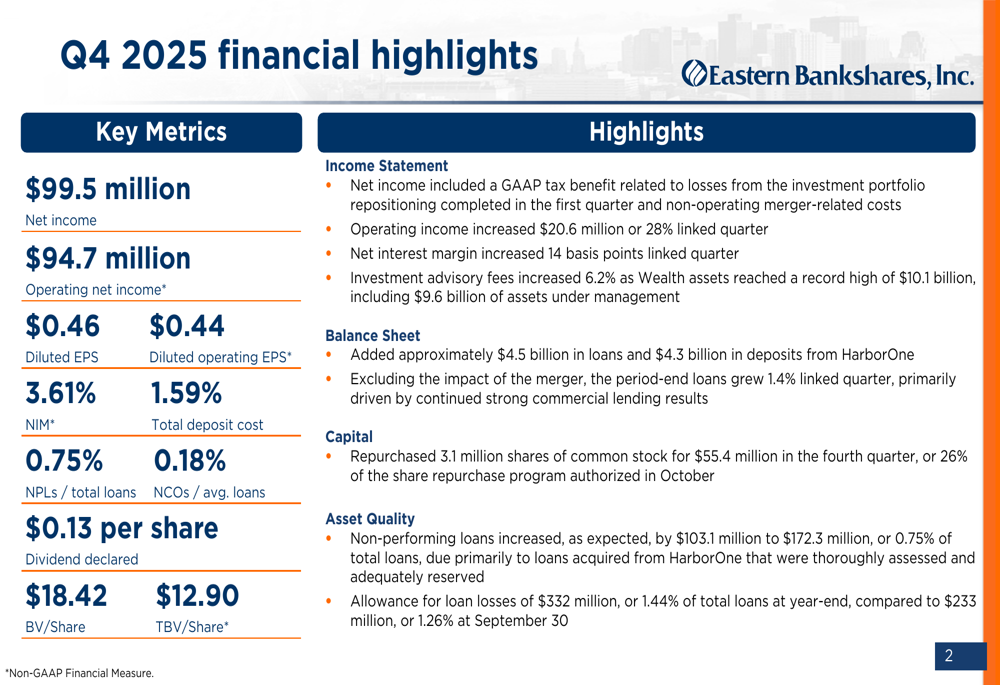 Eastern Bankshares Q4 2025 slides: EPS beat drives 8.3% stock surge amid merger integration