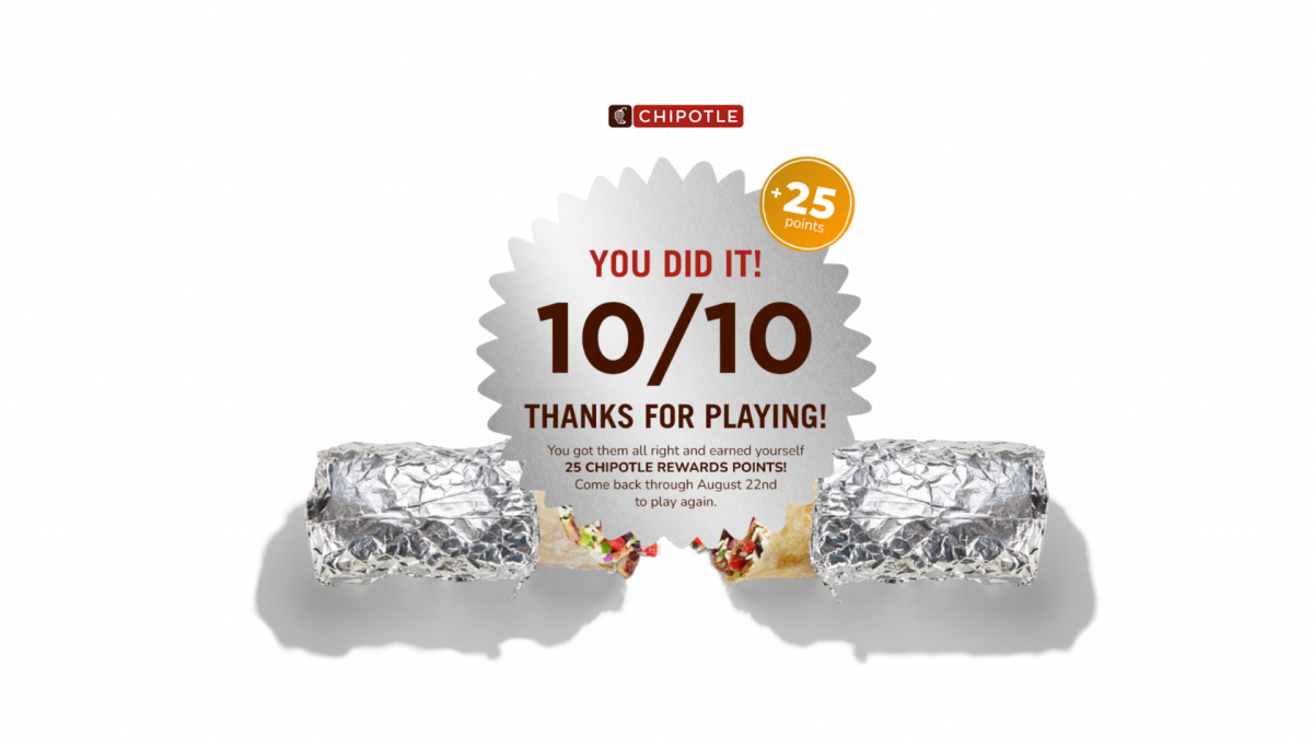 This week, restaurant chain Chipotle is running its annual Chipotle IQ trivia contest. If you answer all 10 online questions correctly, you may win a buy-one-get-one-free coupon, and 50 people will win “free burritos for a year.”