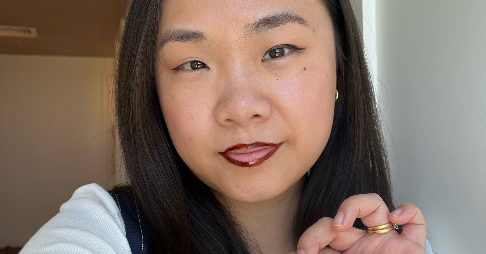 “Peeling it off was quick and totally painless, but the pigment clung to my dry patches, creating an uneven finish. I’m not a red lip person, so I might not be the best judge of the shade, but once I added a bit of lip oil, it evened out and looked much better! As a habitual lip licker (and picker), it didn’t last very long on me — just smushing my lips together and eating breakfast was enough to wear most of it, so I ended up removing the rest with a little micellar water on a cotton bud. It’s safe to say, it won’t be replacing my trusty Laura Mercier Perfecting Lip Liner anytime soon, but it is pretty fun.”