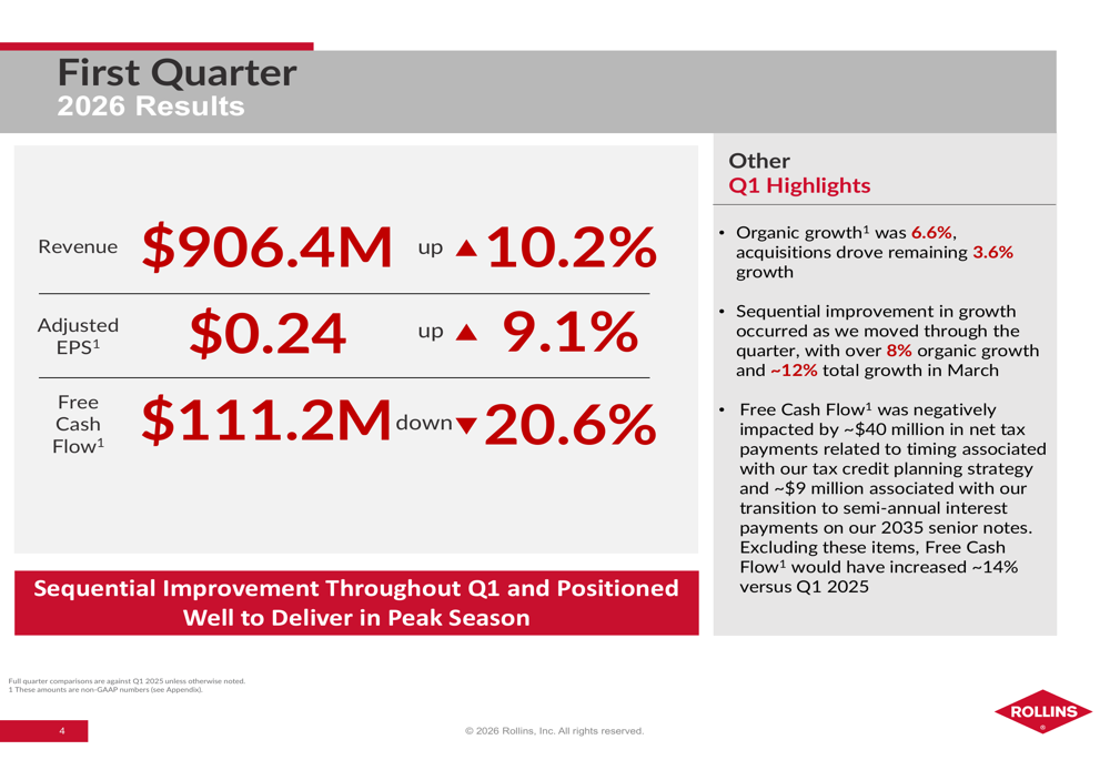 Rollins Q1 2026 slides: sequential growth accelerates into peak season