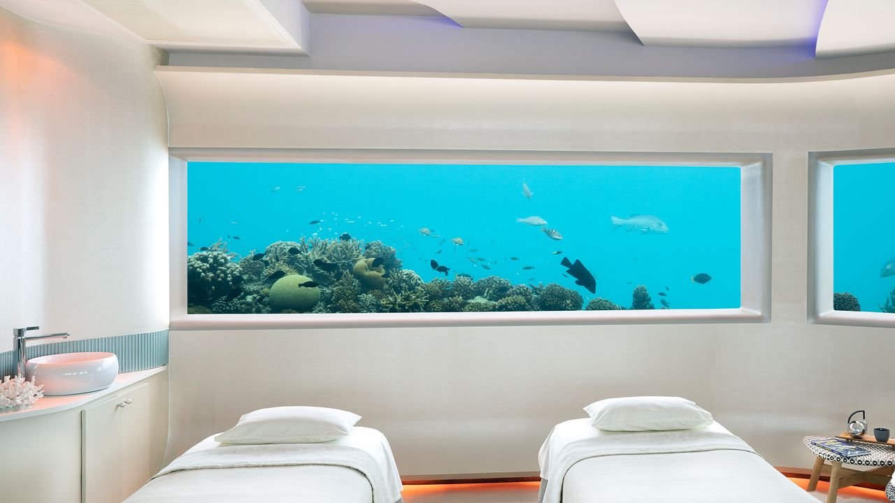 These bucket-list properties are destinations in and of themselves, offering a unique way to get up close and personal with marine life. Whether you’re dining in a restaurant beneath the sea, sleeping in a villa surrounded by schools of colorful fish, or indulging in a spa day that comes with floor-to-ceiling windows into the ocean, these underwater opportunities feature views you’ll likely otherwise only see on a screensaver.