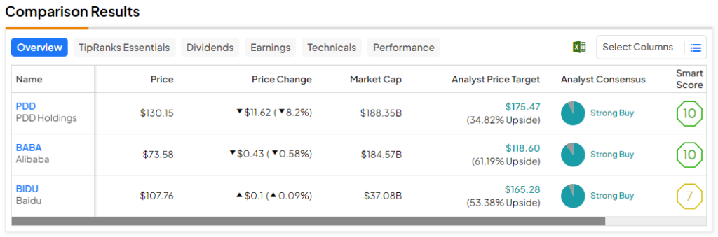 Therefore, let’s tune into TipRanks’ Comparison Tool to check in with three U.S.-listed Chinese tech stocks that Wall Street thinks could gain in 2024.